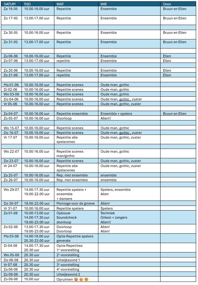 Audities cast, ensemble en dans